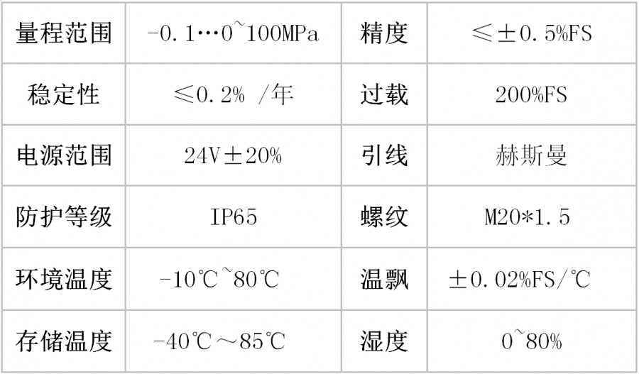 The PYB100 pressure transmitter uses a diffused Silicon pressure core as a sensitive element, and a full-digital circuit is selected. The overall performance is stable and reliable, and long-distance signal transmission can be carried out. All stainless steel structure, easy to install. Has extremely high anti-interference and impact resistance. Widely used in pneumatic, hydraulic, water supply, fire protection, environmental protection, medical and other industries.