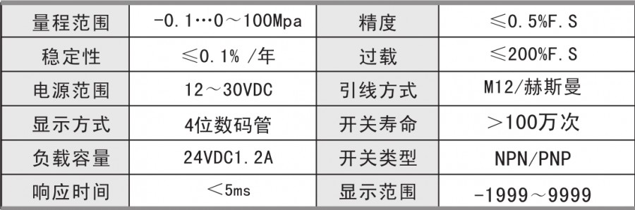 Pressure preset switching point and delay switching output